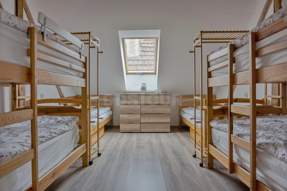 V prostorné ložnici je k dispozici velká manželská postel a 2 poschoďové postele pro celkem 6 osob.