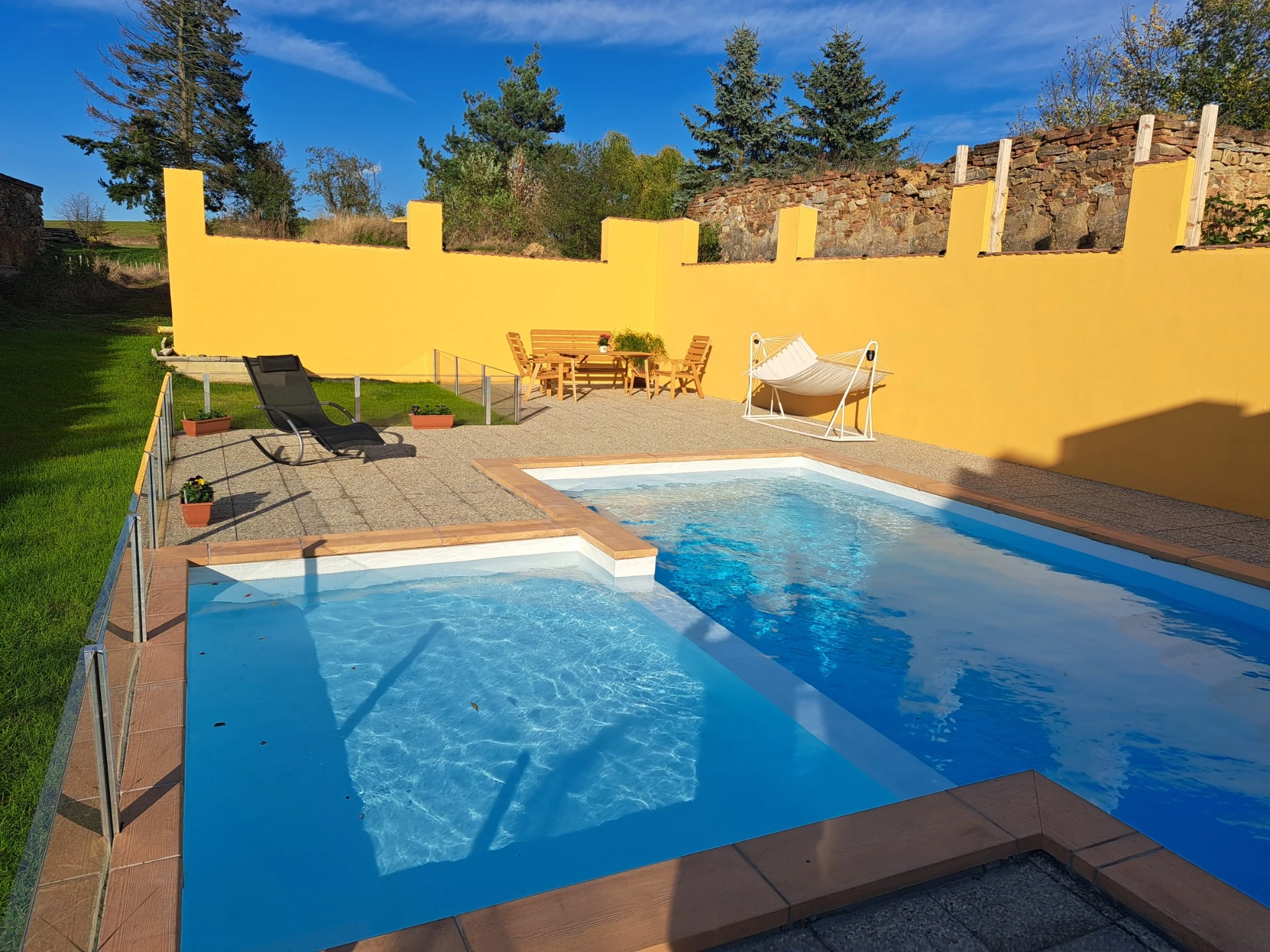 Uzavřený oplocený dvůr a zahrada (500 m²) nabízí: